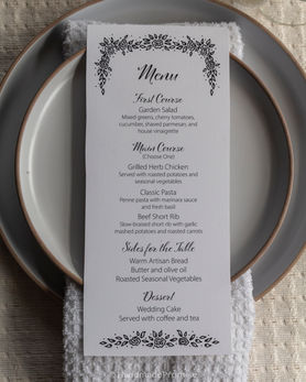 These designs are available as a semi-custom invitation. Guests love knowing what’s being served, beautiful menus add excitement and elevate the table setting! Starting at $35.00 for design customization and printing quoted based on quantity.